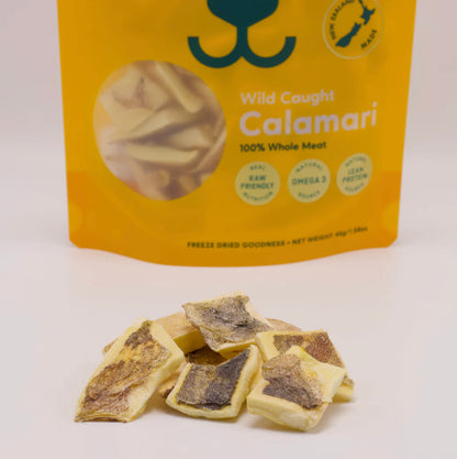 - Freeze-drying removes the moisture from raw food to preserve it. If you are including Gourmate Calamari as part of a BARF or raw diet, please remember that our treats weigh approximately 75% less than their fresh equivalent
